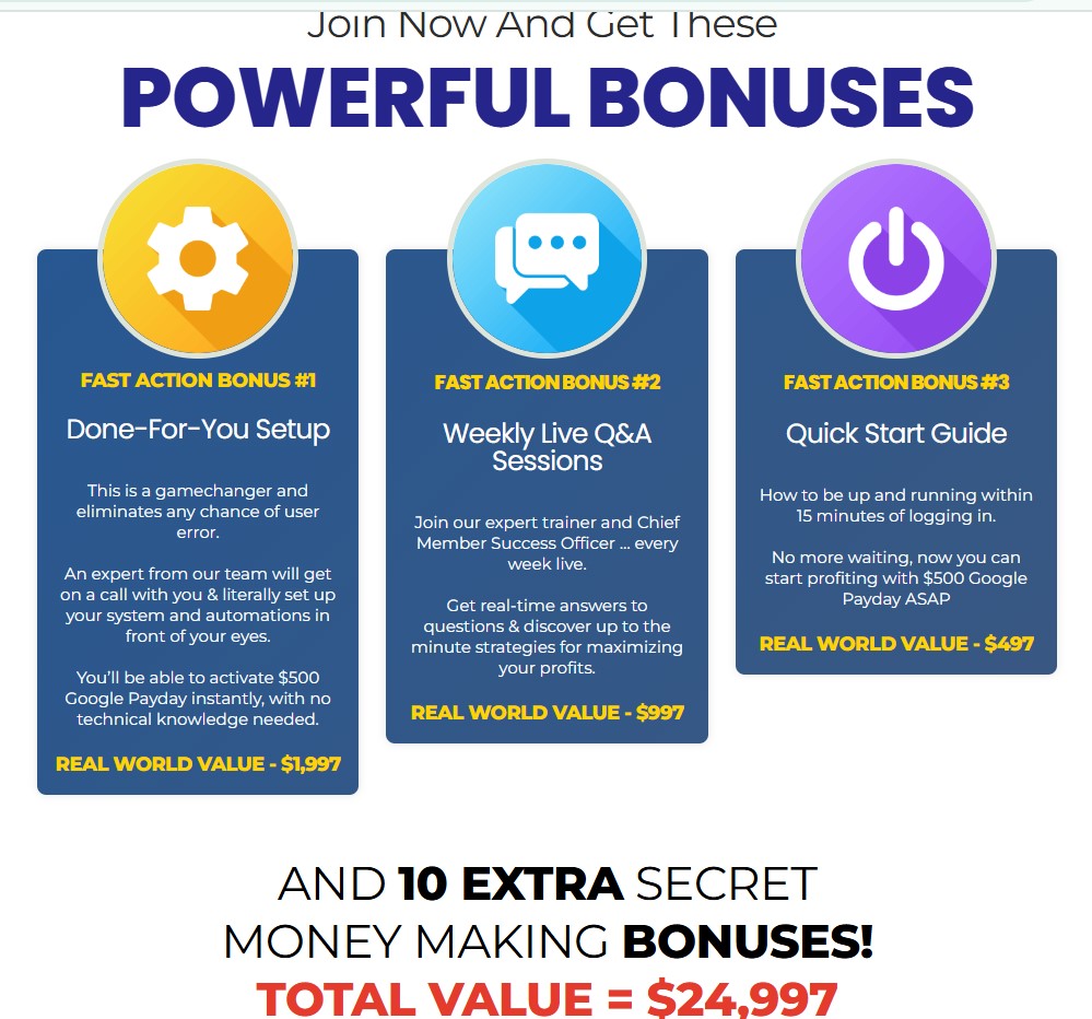 The AI-based traffic system known as $500 Google Payday operates as an easy automated system that produces daily commission payments. The setup process for this system becomes quick because users do not need to pay monthly fees and the program operates independently of human intervention to generate passive earnings. This system attracts beginner online users who want to access affiliate marketing at a low cost.