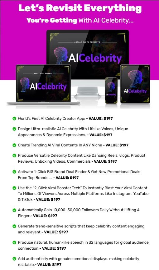 AI Celebrity enables users to generate aesthetically appealing video content for Instagram and YouTube and TikTok and provides them with both significant watch time along with significant daily follower growth. The AI Celebrity system contains a “1-Click Celebrity Brand Deal Finder” that allows users to find multiple day sponsorships available at $500 to $1,000 each day. A thorough evaluation is necessary to determine the substantial advantages that AI Celebrity offers.