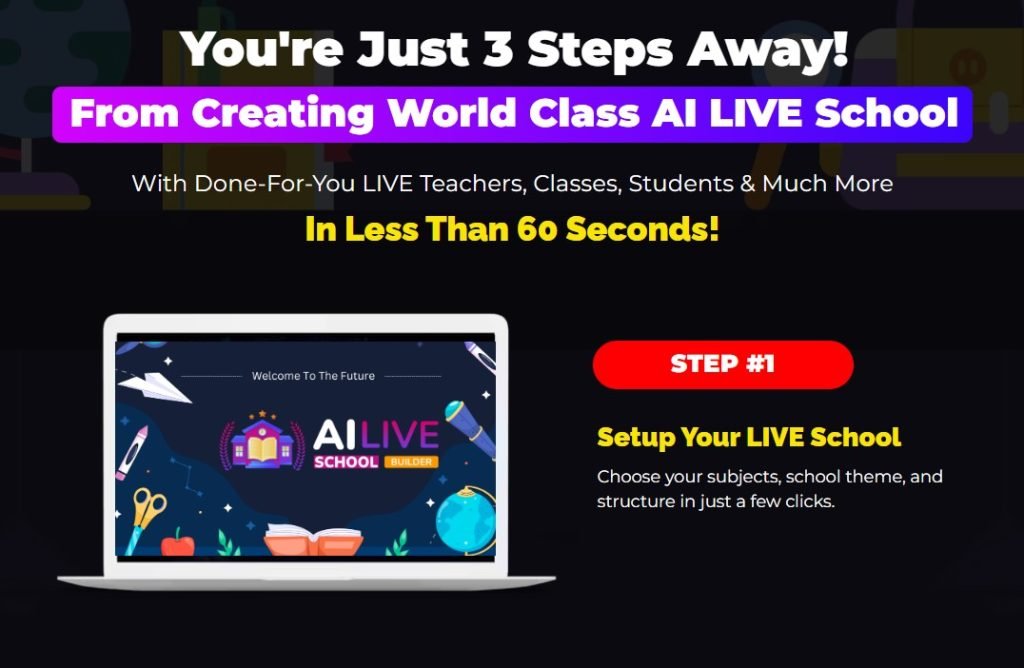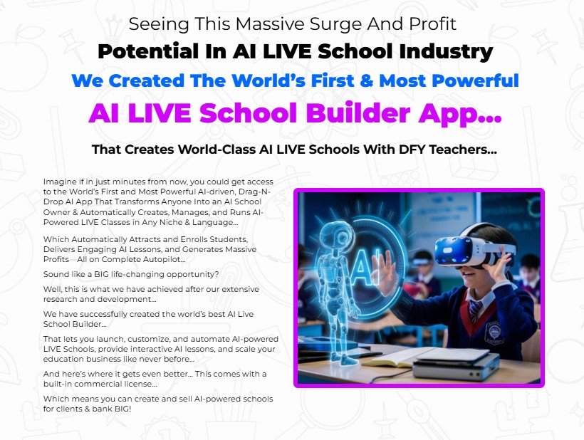 The World’s First AI LIVE School Builder App That Creates A Completely New AI LIVE School With Done-For-You AI LIVE Teachers In Any Niche & Language In Under 60 Seconds!