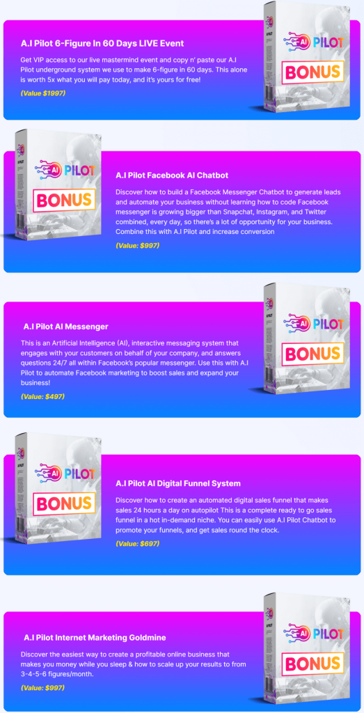 Profit Accelerator: You will receive immediate access to both the Profit Accelerator and the “Done-For-You” AI Pilot version if you are among the first 99 action takers. Profits can be increased by an average of 325% with this incentive.