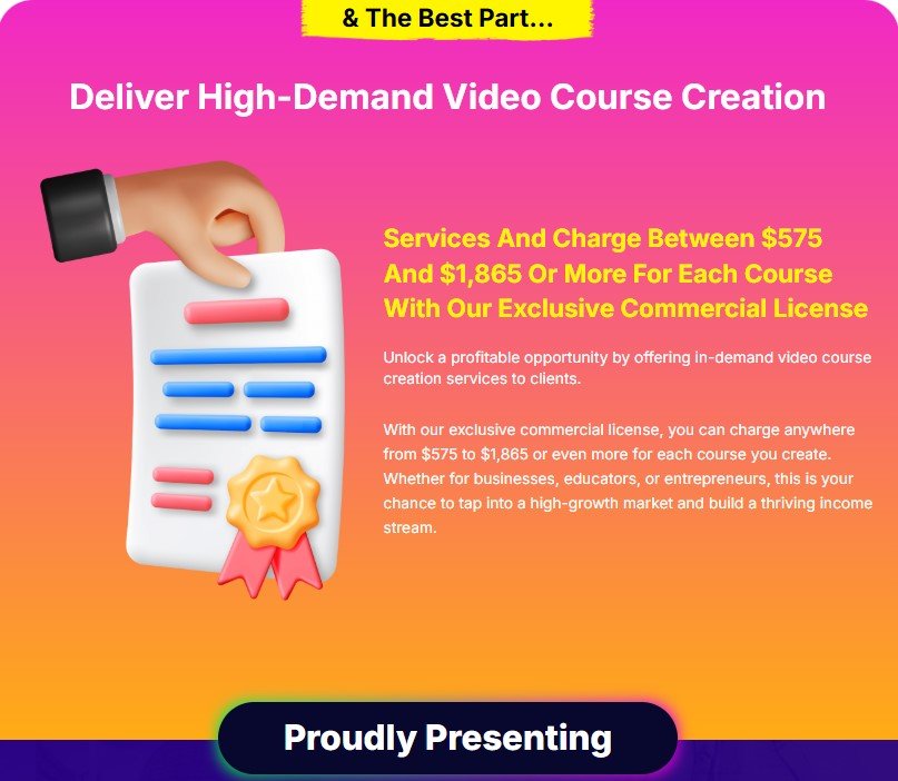 - Commercial License – Offer video course creation services to businesses & educators