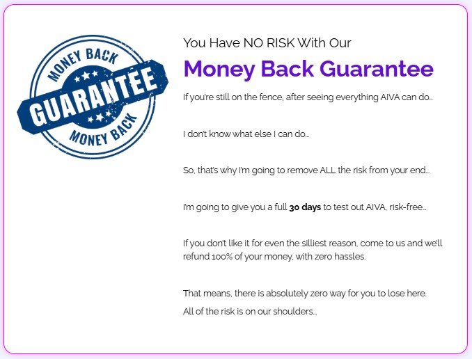 A. Rest easy, friend! If AIVA doesn’t meet your expectations within 180 days, just let us know and we’ll gladly refund every single penny.