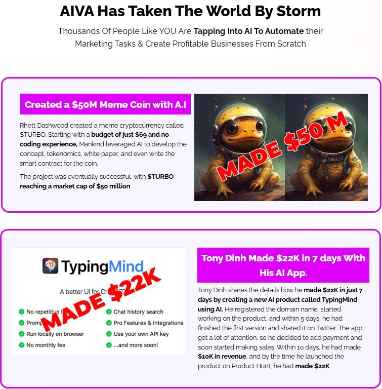 AIVA has already made waves in the digital space, helping entrepreneurs and businesses achieve significant financial success: