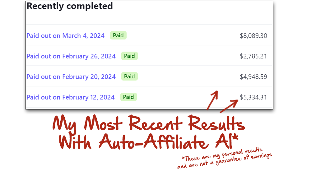 With Auto Affiliate AI, you can get your first commission quickly—often in as little as three hours—and receive $5,000 every week on average. The system needs little input from you and operates continually, around-the-clock. AI software drives its automation, which guarantees optimum results with the least amount of work invested.