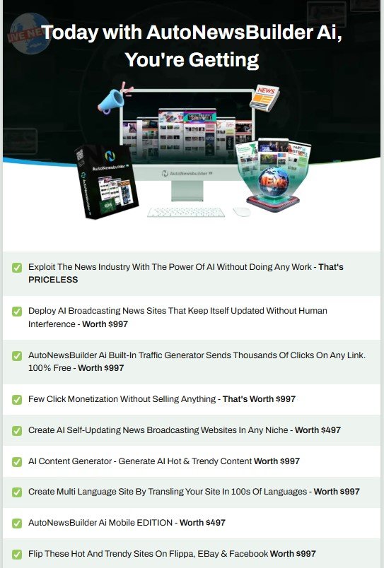 If you want to reach a $1.2 Trillion News Industry without the need for content production or tech savviness then Auto News Builder AI is ideal for you. Don’t wait any longer to create valuable news sites that you can watch blossom and expand your empires!