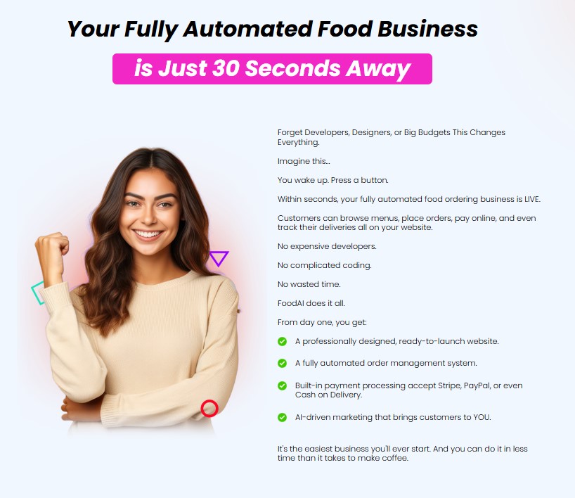 FoodAI Studio represents an exceptional investment choice for starting a food delivery business including UberEats-like website development and selling DFY food websites to achieve high profits. The platform provides beginners and experienced entrepreneurs with a perfect solution because users don’t need any coding skills and can use full AI automation without paying ongoing fees.