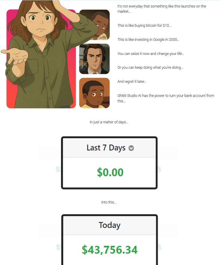 Our average member made their first sale the same day they got access to Ghibli Studio AI.