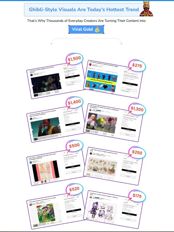 - Freelancers & Agencies – Sell videos and Ghibli-style art as a service.