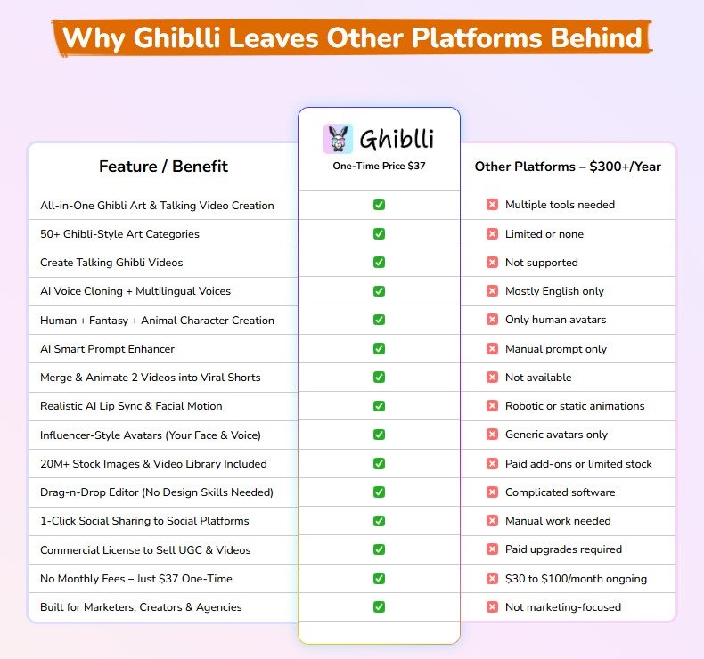 Ghiblli isn’t just another video tool. It’s built on Sora-like AI tech (yes, like OpenAI’s Sora), making it smarter and faster than most competitors.