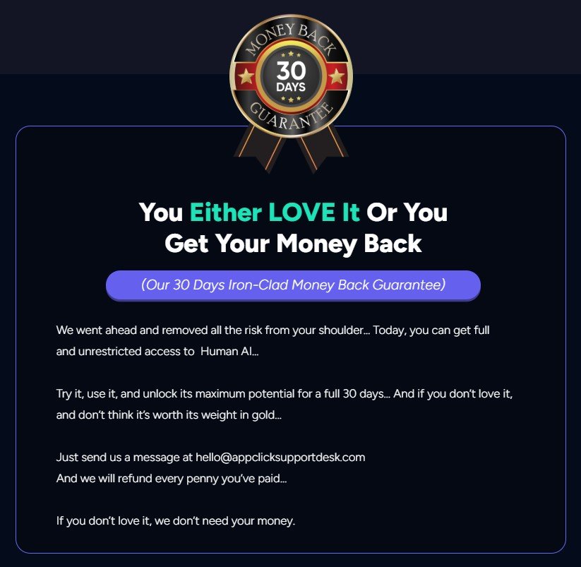 If you tried Human AI and failed, we will refund you every cent you paid