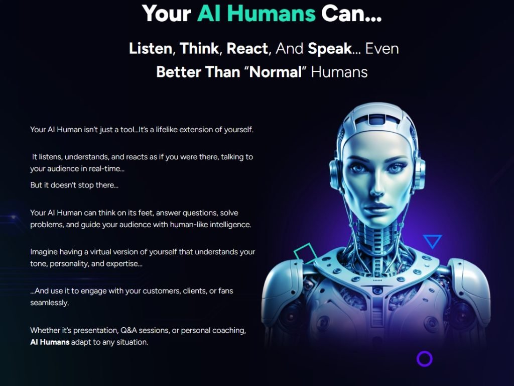 - AI humans can handle customer inquiries, sales, coaching programs, and support services.