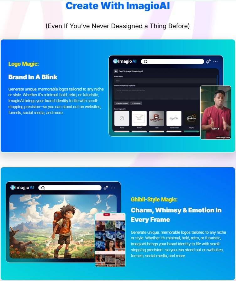 A: Imagio AI was created keeping newbies in mind. So, it’s 100% newbie-friendly & requires no prior design or tech skills.