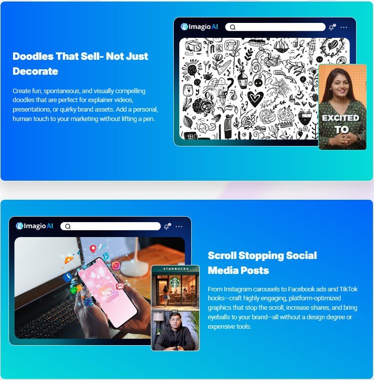 From product launches and marketing campaigns to educational materials and brand kits — Imagio AI helps entrepreneurs and businesses scale faster.