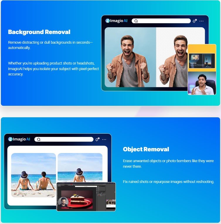 Imagio AI is an AI-powered image creation platform on the cloud that incorporates more than 15 image tools that dominated the entire industry into a smooth dashboard. It is made to satisfy the needs of marketers, content creators, eCommerce sellers, agencies, freelancers, and anyone interested in creating spectacular looking visual materials quickly without requiring design skills.