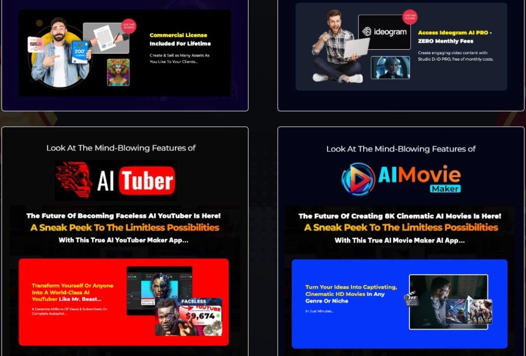 - Allows users to create and sell unlimited AI assets, keeping 100% of the profits.