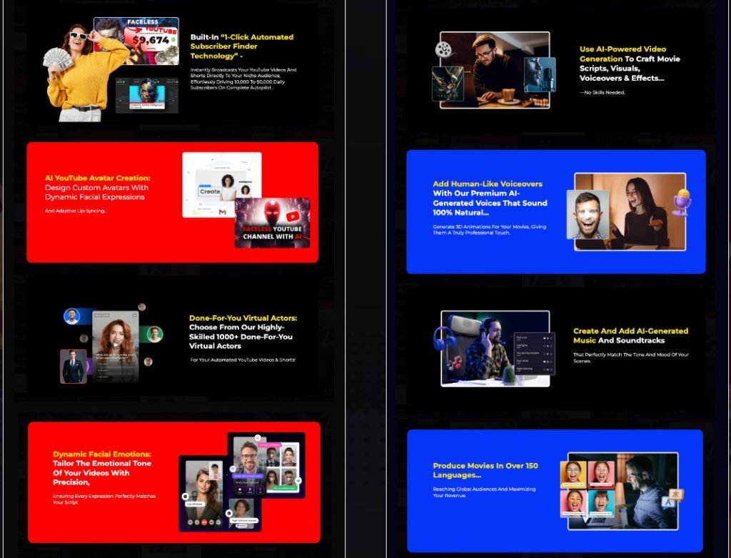 - Multilingual video production with dynamic facial emotions.
