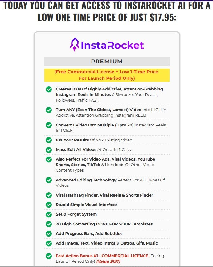 “InstaRocket AI” Is The “Secret Sauce” Technology That Creates 100s Of Highly Addictive, Attention-Grabbing Instagram Reels In Minutes & Skyrocket Your Reach, Followers, Traffic FAST!