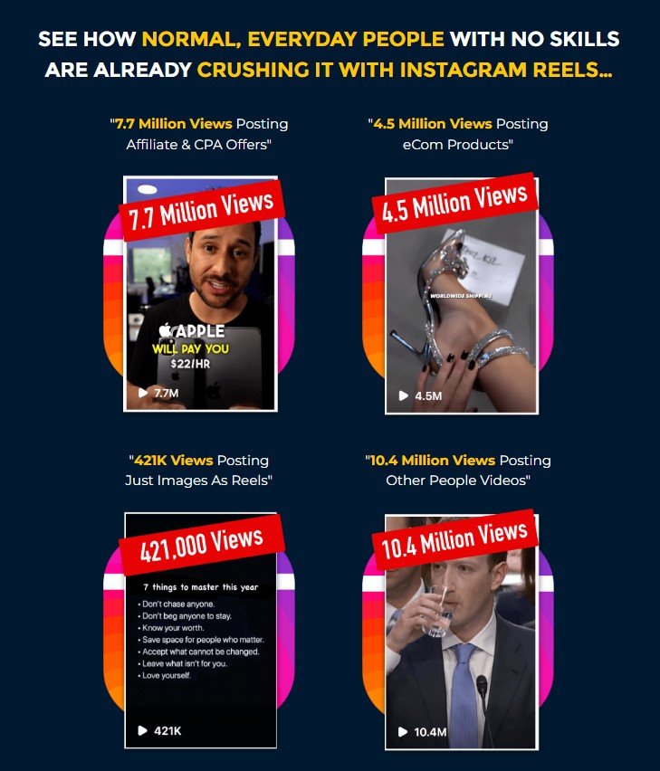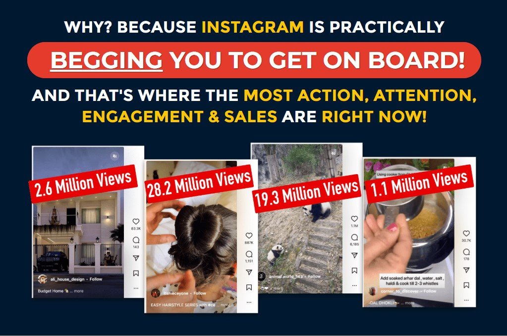 - Create 100s Of Highly Addictive, Attention-Grabbing Instagram Reels In Minutes & Skyrocket Your Reach, Followers, Traffic FAST!