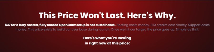 If the product performs close to how it is described, then the $37 front-end price is very aggressive compared to the time, money, and risk involved in setting up a raw OpenClaw system yourself.