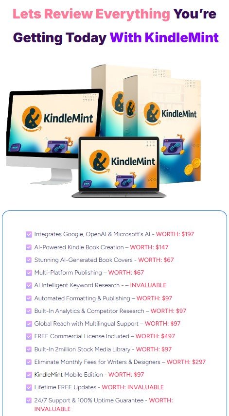 A. KindleMint is the world’s first AI-powered publishing assistant that leverages the combined power of Google and Microsoft AI, designed to help you dominate Amazon Kindle Publishing. From keyword research to content creation and formatting, KindleMint does it all—giving you a massive advantage in the self-publishing world.