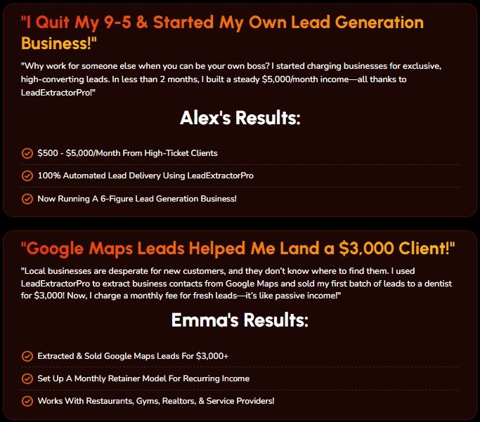 Absolutely! LeadExtractorPro comes with a free commercial license, allowing you to sell extracted leads and keep 100% of the profit. Many users make $5,000-$50,000 per month just selling leads to businesses, agencies, and freelancers!