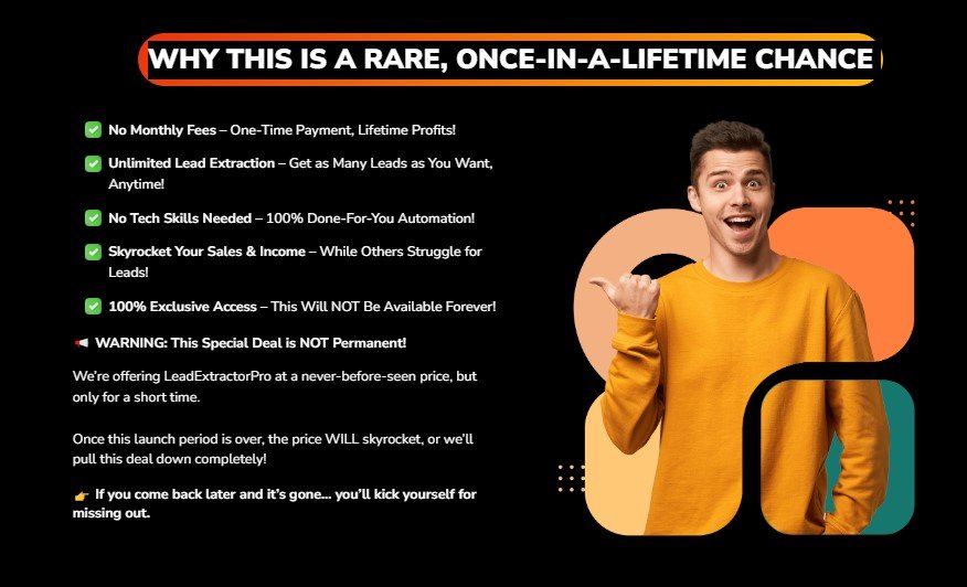 Simple! Click the button below, grab LeadExtractorPro at the special launch price, and start generating high-quality leads in minutes!