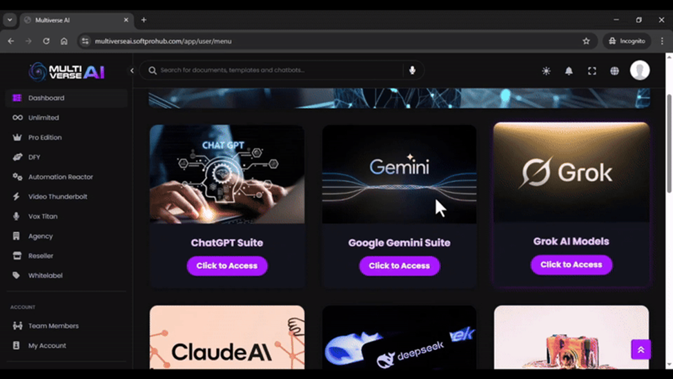 Instead of switching between different apps, remembering multiple passwords, and paying separate subscriptions, you can log into Multiverse AI and instantly: