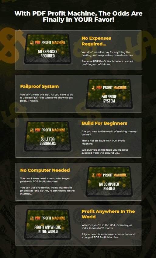 No hidden costs – Unlike many online programs, PDF PROFIT MACHINE has zero upsells or hidden expenses.