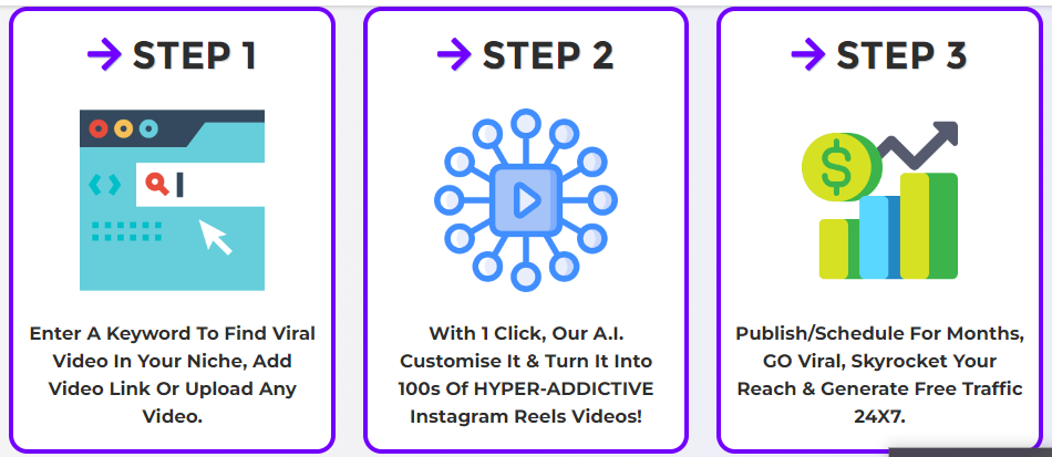 A cutting-edge cloud-based program called ReelRampage AI promises to generate a ton of traffic for your website, blogs, affiliate links, and deals by automating the creation of Instagram Reels. Designed with marketers, influencers, and entrepreneurs in mind, it makes the most of Instagram’s algorithmic preference for short-form videos in order to increase visibility, interaction, and revenue. ReelRampage AI makes video marketing easy to use, especially for people without any prior knowledge or technical know-how, thanks to its intuitive interface.