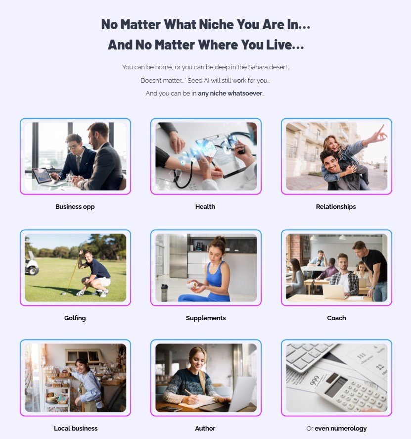 The system caters to novices and professionals through its design that needs no special skills and demands no prior experience along with any additional equipment. Seed AI operates to transform any form of content promotion into a fully automated process which scales from affiliate offerings to eCommerce businesses and books as well as coaching programs and other product types.