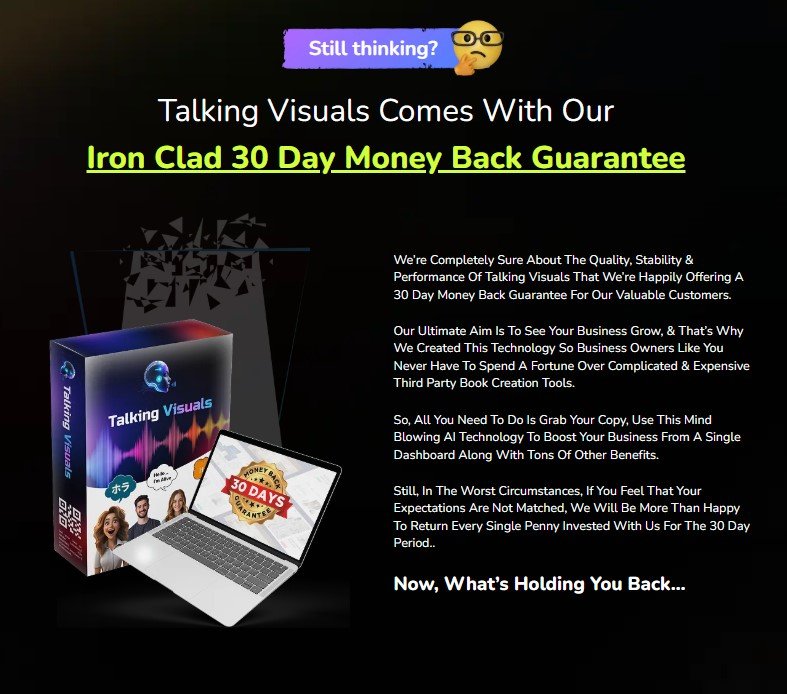Try Talking Visuals risk-free with a 30-day refund policy.
