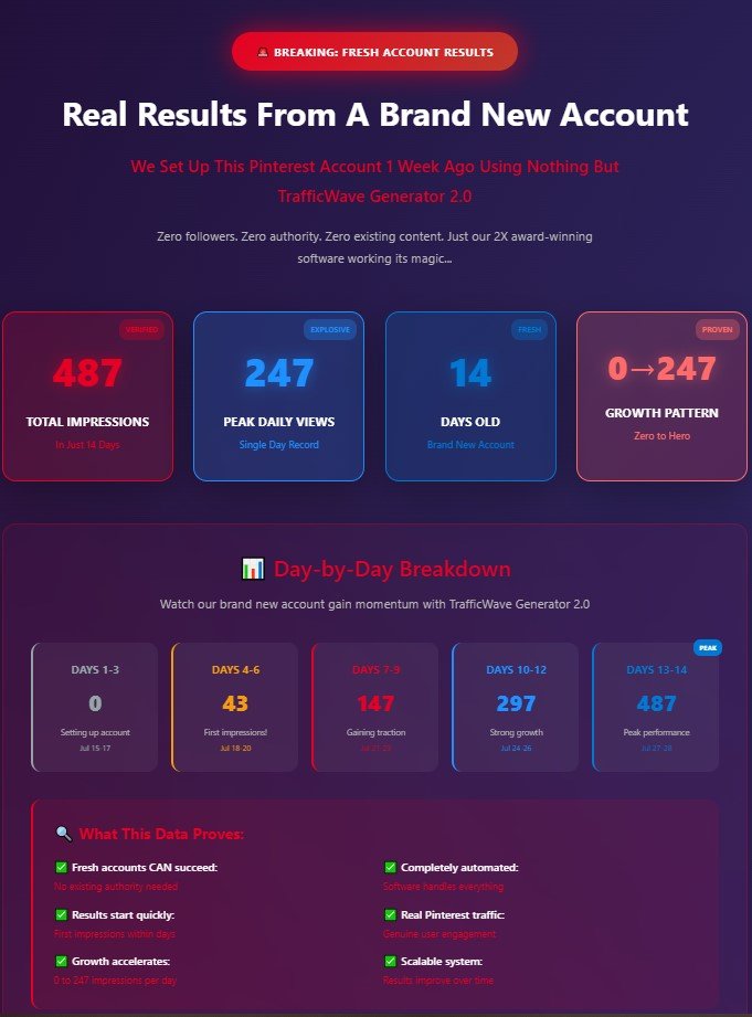 Absolutely. TrafficWave Generator 2.0 eliminates all the headache and time that comes with using Pinterest marketing. Because of its intelligent automation, visual is high-converting, and dashboard user-friendly, even a novice can begin to see results in a few days. It is best suited to anyone who is serious about driving traffic without use of ads.