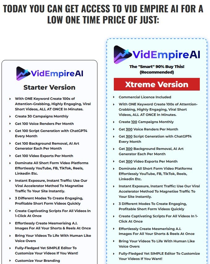Pricing & OTOs: VidEmpire AI Review 2025