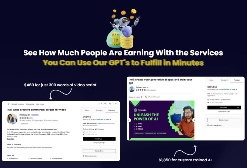 There are several optional upsells for this product that offer additional benefits. The OTO1 include an expanded GPT pack that helps produce more types of video scripts and marketing content. OTO2 offers sales materials to help selling the GPTs. Other offers include discounted bundles for our previous products.