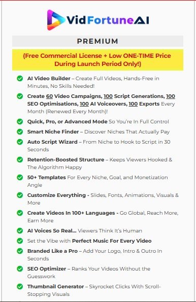 This isn’t just another “video maker.” VidFortuneAI helps you rank, convert, and earn — in the right niches that pay.